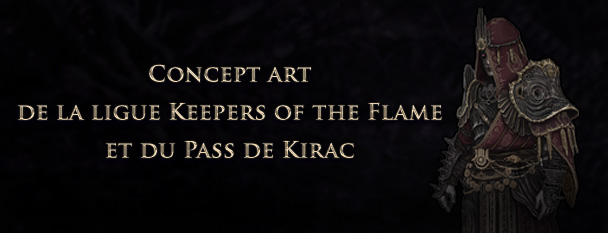 Dans l’annonce d’aujourd’hui, nous vous proposons de découvrir des illustrations de concept art de la ligue Keepers of the Flame et de la Salle des coffres de Kirac, qui contient un ensemble d’armure exclusif ayant pour thème l’entité surnaturelle de l’Atlas qu’est la Prodige.