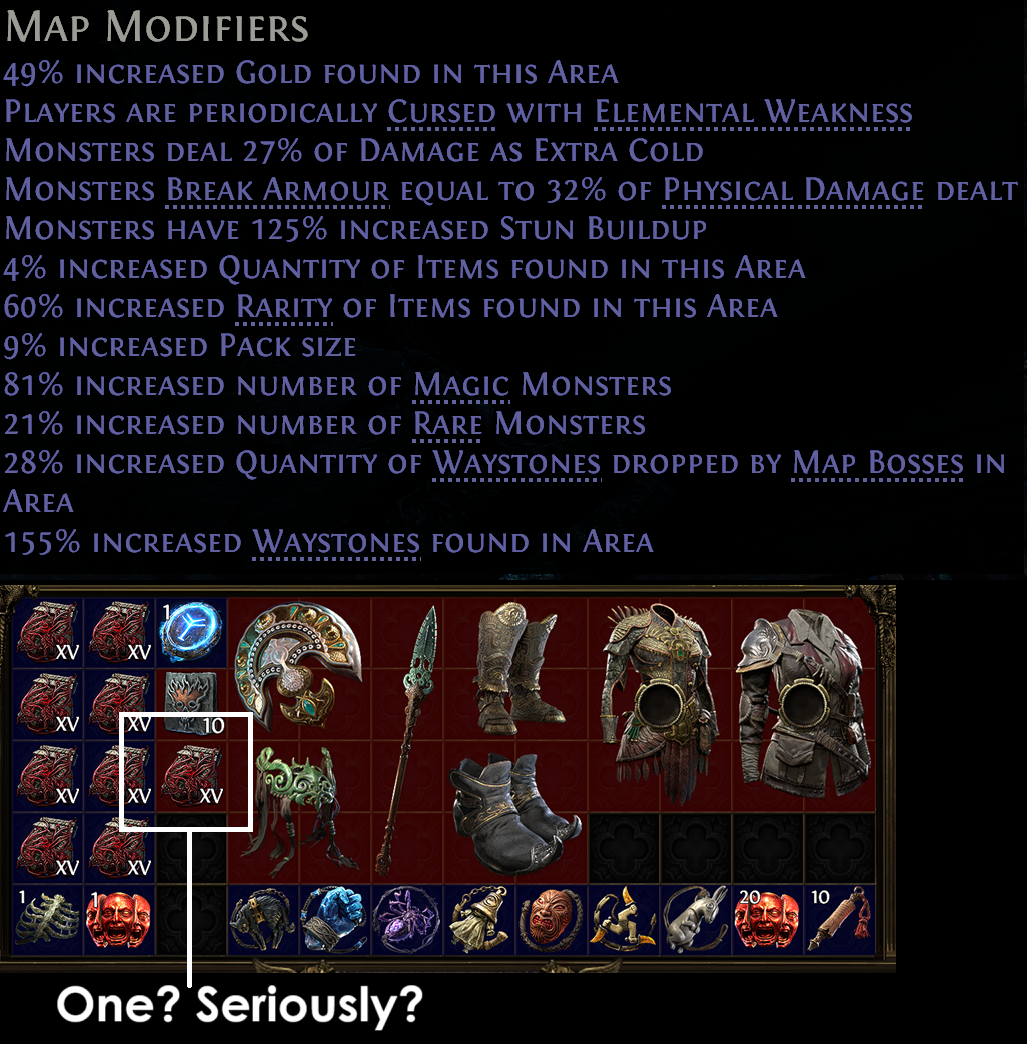 Most maps I get only one waystone back even as I run 6mod T15s, with 150%+ increased waystones found in the area.