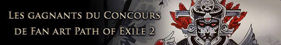 Notre Concours de fan art ayant pour thème Path of Exile 2 s’est achevé. Nous sommes ébahis par la créativité et l’originalité de chacune des œuvres qui nous sont parvenues. Avec l’aide de nos incroyables artistes, nous avons choisi les gagnants, que nous allons à présent annoncer. Nous allons également récompenser un certain nombre de mentions honorables lors d’une annonce ultérieure, qui sera postée la semaine prochaine.