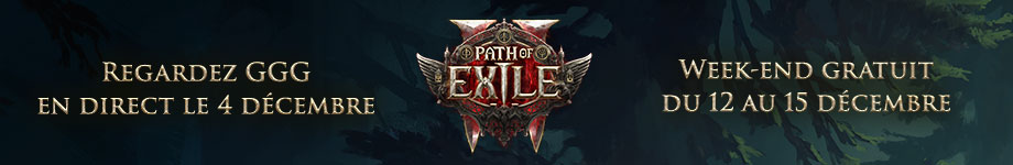GGG en direct commencera le 4 décembre à 20 heures (CET) sur twitch.tv/pathofexile, ce qui correspond à la date suivante dans vos fuseaux horaires respectifs : déc. 04, 2025 2:00 PM (UTC−5). Pendant ce stream d’annonce en direct, nous vous présenterons en détail tout le contenu de notre prochaine extension de Path of Exile 2. Après le stream, Jonathan et Mark répondront à toutes vos questions lors d’une session de Q&R en compagnie de ZiggyD, puis nous mettrons en ligne les patch notes. Comme toujours, les Twitch drops seront activés pendant toute la durée du stream d’annonce, et les microtransactions à obtenir seront dévoilées bientôt. Le co-streaming est comme toujours le bienvenu !