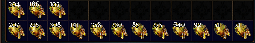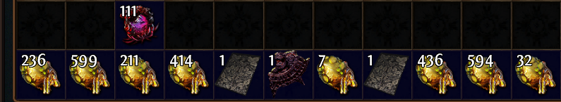 " Сейчас поставил эксперимент - бегал на картах 8-12 лвл (не закупал заранее, брал какие уже есть, карты случайные, без выбора) На картах бежал до жатвы, сносил только желтые посевы, затем телепорт в убежище и следующая карта. За полчаса получилось 11 карт, результат на скрине ниже (слева направо сколько выпало жизненной силы с каждой карты, где мусор - не оказалось желтых посевов) Итого, 2529 дропа, то есть, 2 божественных сферы. ![]() Ну в целом, как для меня, на моём уровне развития, нормальный дроп. Но это как-то уж очень уныло по геймплею - бежать до жатвы и перезапускаться сразу, не обращая внимания на дроп шмоток. (на самом деле, я подбирал кое-что, но это всё оказалось мусором) ![]() Dernière édition par turikaleksandr#8537, le 29 nov. 2025 à 13:12:41
