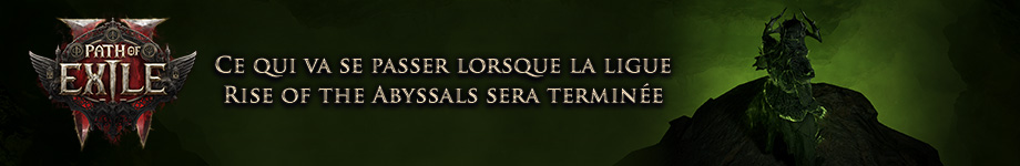 Votre combat contre les Abyssaux n’est pas encore terminé, dans la mesure où la mécanique de cette ligue sera ajoutée au contenu de base de Path of Exile 2 lors de la mise à jour The Last of the Druids. Tous les détails à ce sujet seront dévoilés le 4 décembre à 20 heures, lors du stream d’annonce. La ligue Rise of the Abyssals prendra fin le 8 décembre à 22 heures (CET), ce qui correspond à la date suivante dans vos fuseaux horaires respectifs : déc. 08, 2025 4:00 PM (UTC−5). Lorsque cela arrivera, tous vos personnages et les objets en leur possession seront transférés dans les ligues Accès anticipé standard ou hardcore, en fonction de leur ligue Abyssal d’origine. Rien ne sera effacé, donc une fois le transfert effectué, vous pourrez continuer à jouer avec vos personnages en ligues Accès anticipé. Le 12 décembre, lors de la sortie de The Last of the Druids, vous aurez l’occasion de commencer une nouvelle ligue dotée d’une nouvelle économie. Merci à toutes celles et ceux qui ont joué à Rise of the Abyssal ! Nous sommes impatients de vous voir jouer à la ligue Fate of the Vaal qui arrive. On se revoit bientôt pour le stream d’annonce ! |