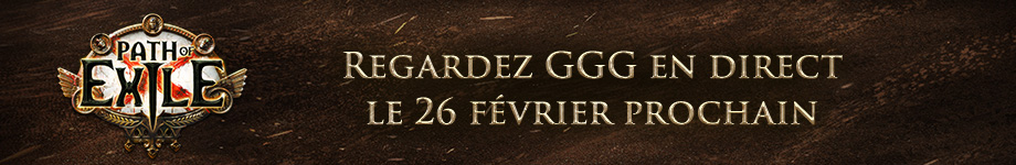 GGG en direct GGG en direct commencera le 26 février à 20 heures (CET) sur twitch.tv/pathofexile. Pendant le stream d’annonce, vous découvrirez tout ce qu’il y a à savoir à propos de l’extension 3.28 de Path of Exile, sa ligue de défis et le nouveau contenu ajouté au jeu. Après le stream d’annonce, le Game director Mark et Game designer Octavian répondront à vos questions dans le cadre d’une session de Q&R en compagnie de ZiggyD. Un nouveau Twitch Drop sera actif pendant le stream d’annonce. Nous donnerons davantage de détails à ce sujet en début de semaine prochaine. Le co-streaming est comme toujours le bienvenu ! Lancement de l’extension 3.28 de Path of Exile Triomphez du Temps lui-même ! Vous pourrez jouer gratuitement à l’extension Mirage le 6 mars prochain, sur PC et consoles. À bientôt ! |